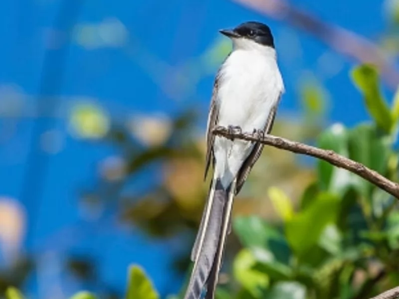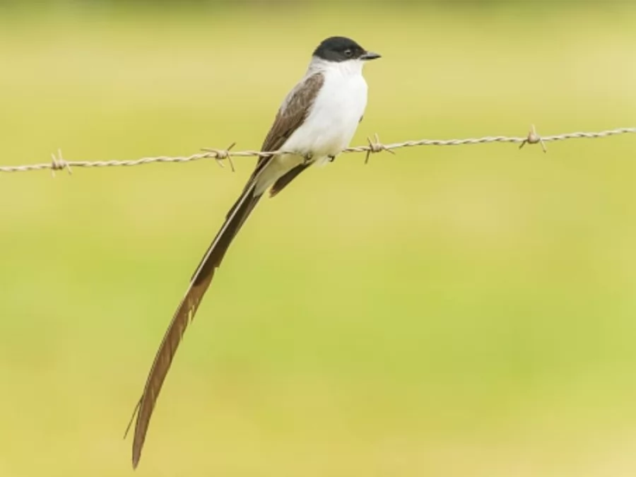 This beautiful little bird has a characteristic extremely long forked tail. That is why in Spanish it is called tail of scissors or tijereta and in English Fork-tailed Flycatcher, which could be loosely translated as fork-tailed fly catcher.