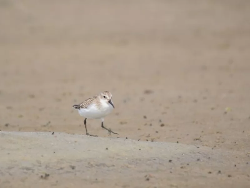 Peeps? Yes, plenty. They were more challenging than the larger shorebirds, but even without a spotting scope, it was evident that Least Sandpipers were relegated to the drier edge of the pond and that Semipalmated Sandpipers liked to keep their feet wet. Western Sandpipers? A few, with most adults in heavy molt. Sanderling, Red Knot, and Semipalmated Plover? These species preferred the sandy beach, and Western Sandpiper sometimes joined them.