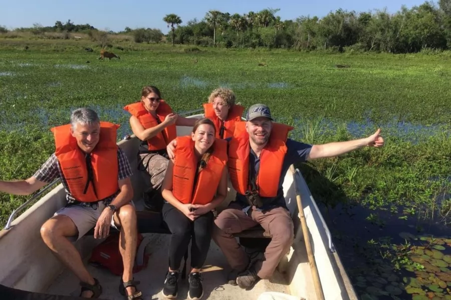 Breakfast at the lodge - boat trip on the Herradura Lagoon Paraguay River and the Cortapick and Salado creeks - lunch on the road - dinner and night in Herradura.